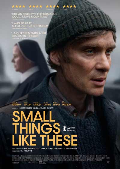 Les images von timmédiatement vous séduire : cette sublime prédominance de la couleur noire, cette réalisation intense qui joue sur les regards, magnifiée par la caméra, pour une œuvre chaleureuse et âpre autour de Noël. Comme un conte hivernal et rugueux où la bonté humaine, l'humanité même, ne se trouve pas naturellement là où on le croit. Small things like these, en plus d'aborder un scandale immonde, disserte sur la notion complexe de bonheur, étrangement et trop souvent liée à l'argent, en tout les cas à une forme d'aisance sociale. Dans une société où la religion catholique était un marqueur essentiel (le film se déroule dans les années 80) et où les couvents profitaient abominablement de cette toute puissance pour commettre l'irréparable.